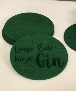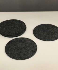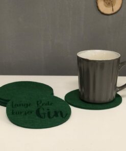 Das Set besteh aus 6 Stück lasergeschnittenen Filzuntersetzern mit einer Dicke von je ca. 3 mm und einem Durchmesser von 12 cm.