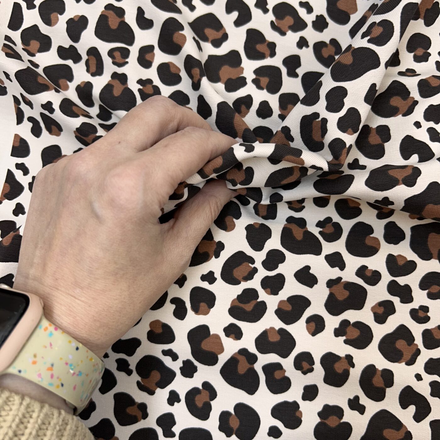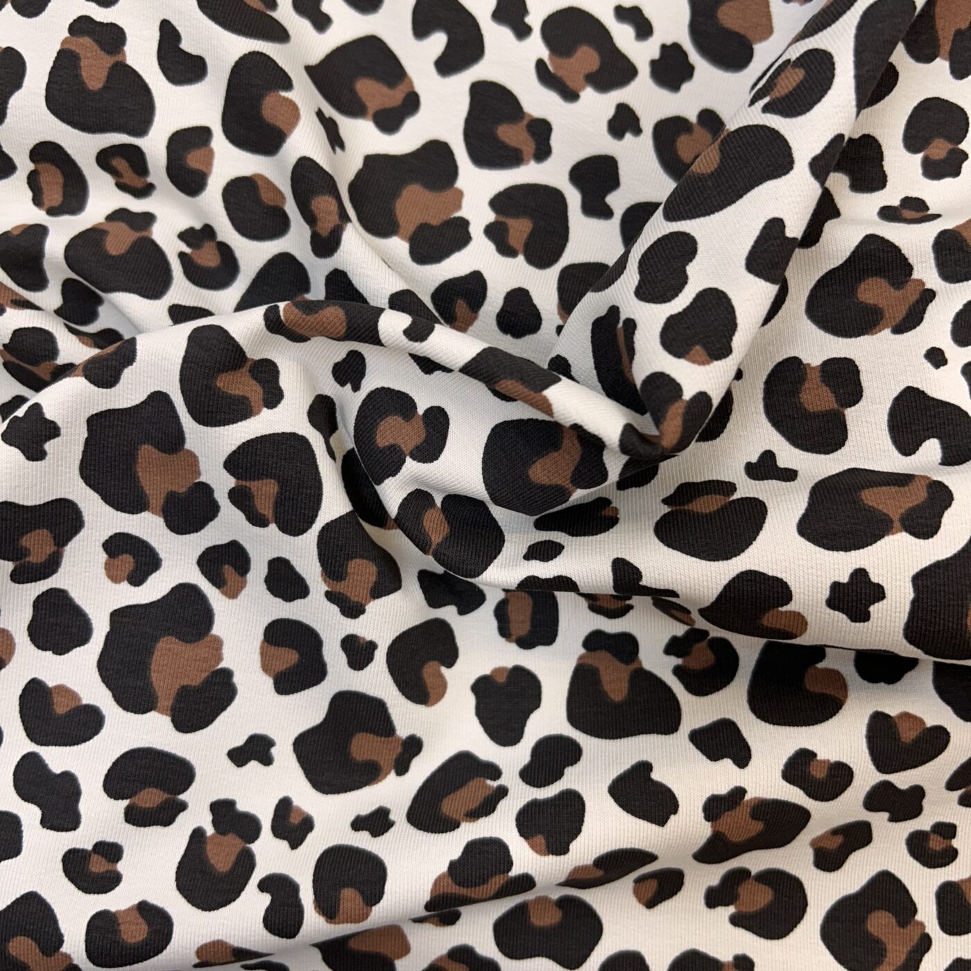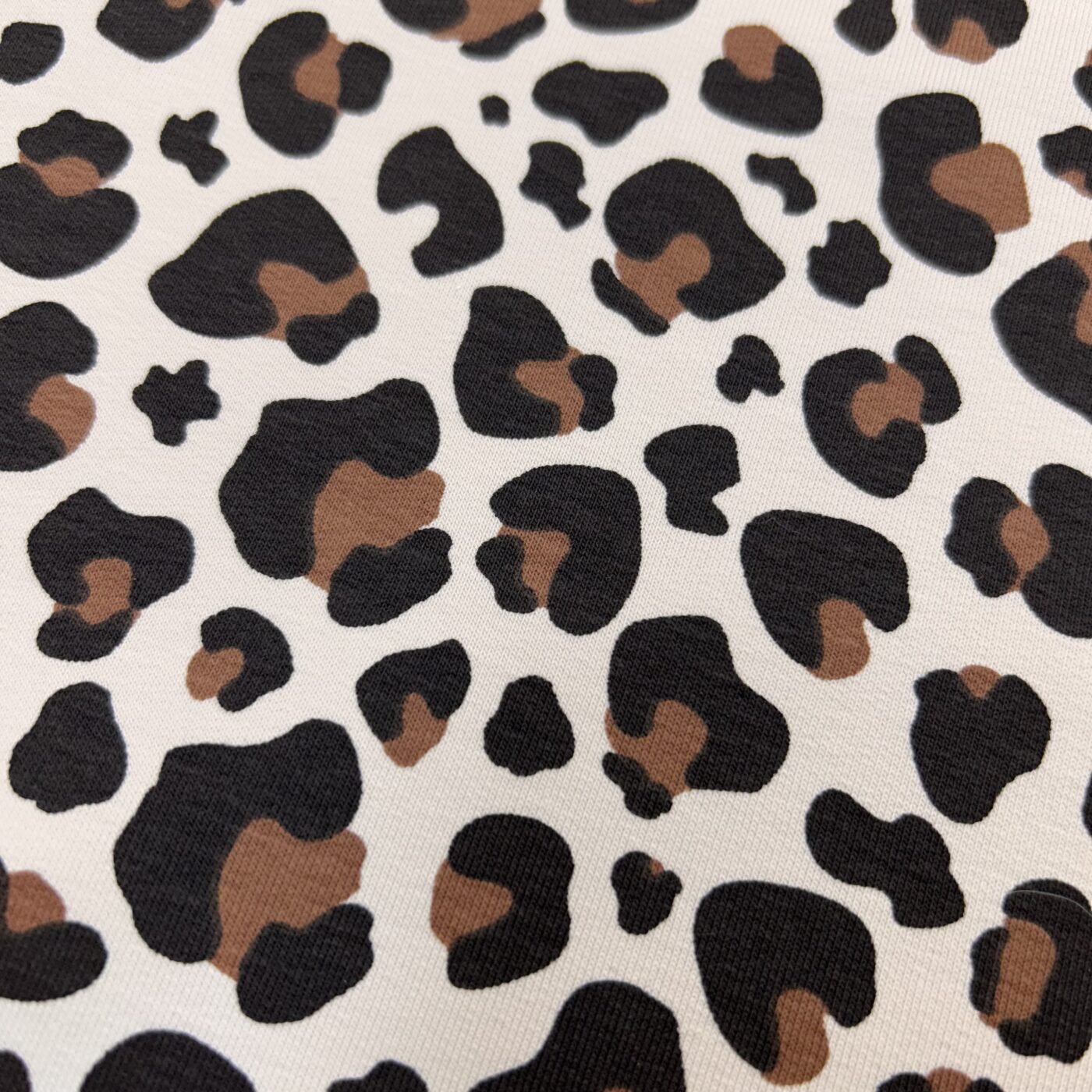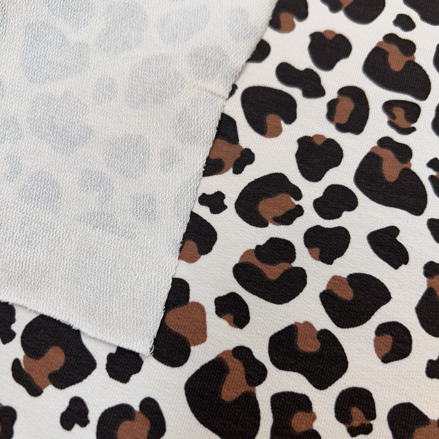 Dieser hochwertige French Terry Print Stoff überzeugt durch sein modernes Leopardenmuster in Caramel und einen wunderbar angenehmen Tragekomfort. Als klassischer Sommersweat ist er innen leicht angeraut bzw. mit typischen Schlingen versehen und dadurch weich, atmungsaktiv und dennoch formstabil.