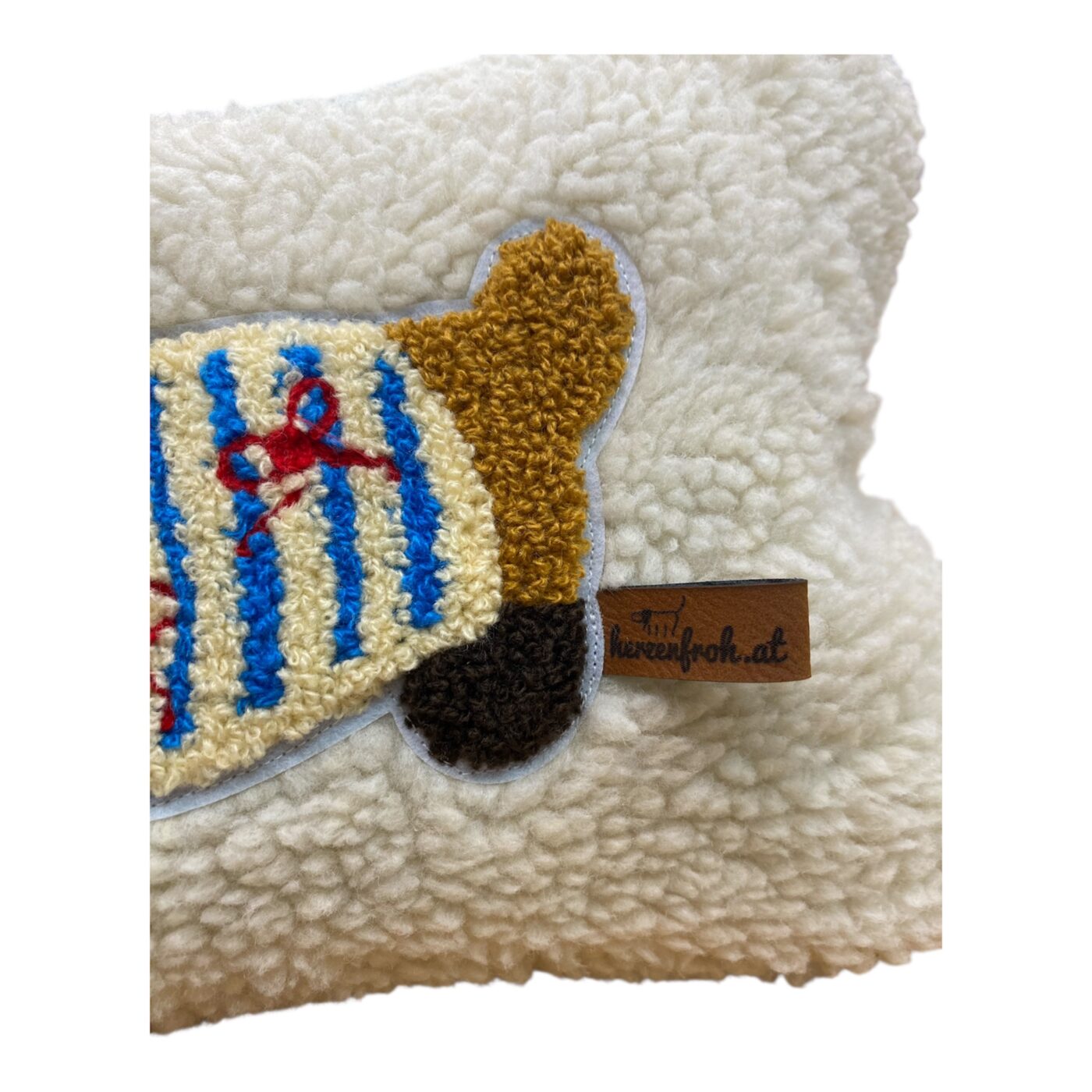 Der Leseknochen ist ein liebevoll handgefertigtes Unikat – mit viel Herz genäht und sorgfältig befüllt.