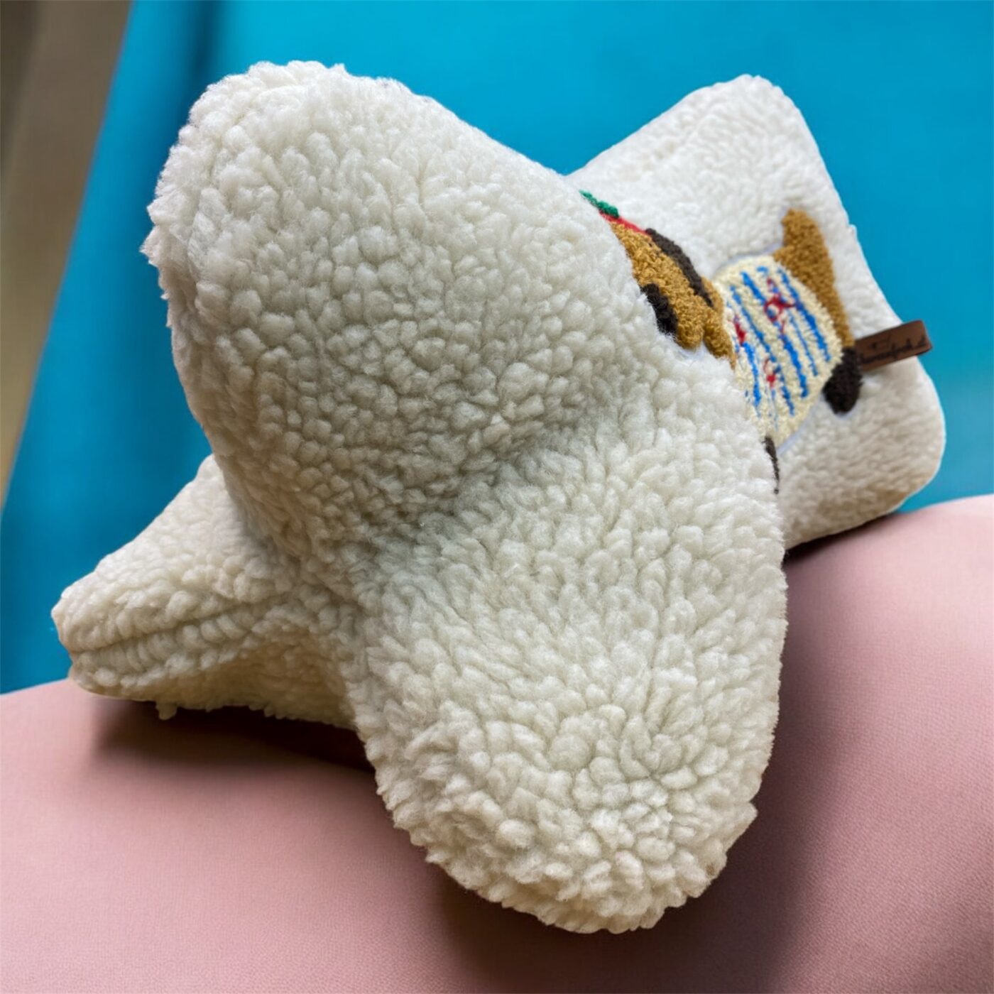 Dank seiner ergonomischen Knochenform sorgt er für eine entspannte Kopf- und Nackenhaltung – perfekt beim Lesen, Fernsehen oder Kuscheln.